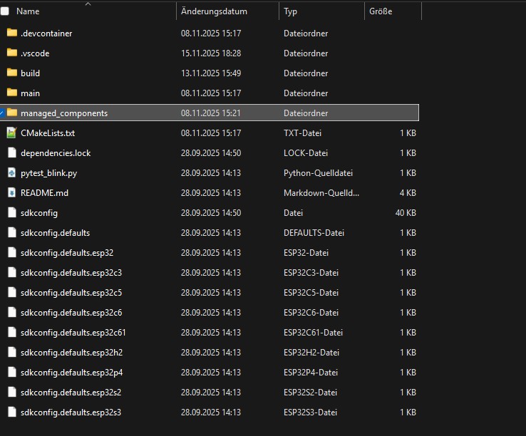 Hinweis: In der CMakeLists-Datei, ist aktuell idf_build_set_property(MINIMAL_BUILD ON) auf ON gesetzt. Das bedeutet, dass beim Bauen des Projektes nicht alle Komponenten eingebunden werden, sondern nur die Wichtigsten.
