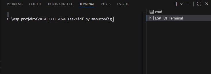 in der Aktivitäts Leiste unten betätigen. Dann geben wir idf.py menuconfig ein und bestätigen mit Enter.