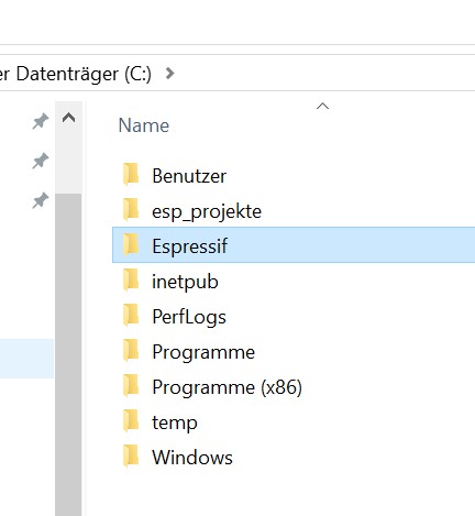 Während der Installation wurde unter C:\ der Ordner Espressif erstellt, auf den wir später zurück kommen werden.